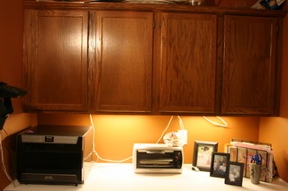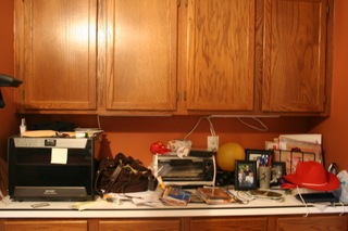 This is just what I needed to do a cleanup of my kitchen countertop. This is the countertop that is on the right when you walk in from the garage and EVERYTHING gets put there. I usually give it a clean as good as this one every month or two. I’m not happy with all the cords hanging in the after picture but Scott is not here to fix all that. And at least the countertop is cleaned. So here we go: