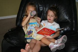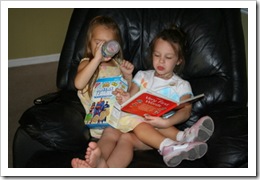 I’m sitting here looking at it now and it still doesn’t really match anything and it’s big and bulky but it’s comfortable.  But what memories I have from it.  I remember lying with Scott in it, snuggled as newlyweds.  I remember being pregnant for the first time and sleeping in it because my heart burn and huge belly just wouldn’t let me do otherwise.  I remember sitting in it nursing  Emma with my blue boppy pillow with bees on it.  I remember Scott holding Emma right in the crook of his arm and somehow always rocking her to sleep.  I remember my two girls sitting side by side in it watching tv.  I remember Emma sitting up and eating her lunch after school with a tv tray watching cartoons.  And most recently, I remember Lexi sitting in Emma’s lap while she pretended to read story to her from a book.