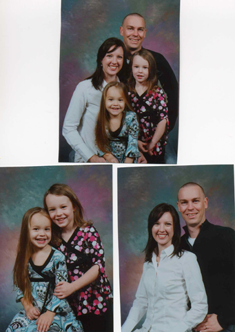 Family Portraits January 6, 2008 by Amy Sorry for the horrid scan job but here’s the results of our family portraits the other week. I’m not a big fan of the background they use but they were free, so no complaining here.