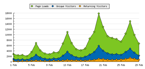 For those interested, February turned out to be an awesome month for my OTH site. Our feed readers, returning visitors and first-time visitors all went way up. Thankfully, that also turns into money apparently. Here are the full month of stats if you any of you are interested.