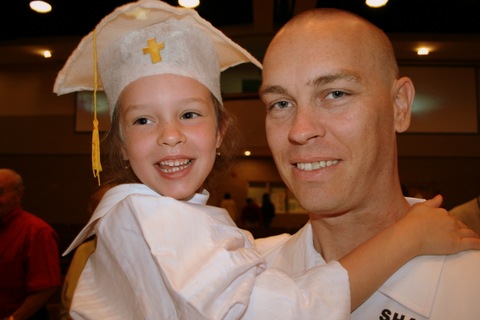 All her shyness wears off when she gets in Daddy’s arms.  She glows and is so excited afterwards