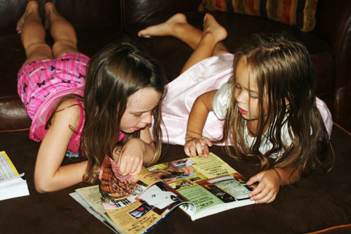 It’s been a slow day. A slow week for that matter. Lexi has had a temperature all week. Today even it was back up to 104.7. So we haven’t been going out a lot. Besides the fact I was SO tired of eating out and ready to be at home. It’s been so quiet around here that the highlight of the day was probably Emma and Lexi reading through the new ABC catalog that came in the mail today.