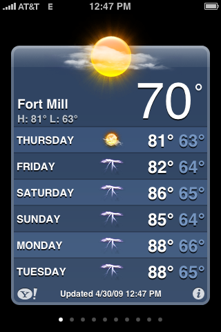 Weather. Another built-in app. I check it at least once a day to figure out what I need to dress the girls (and myself) in for the day. You can add several other cities and I use it when planning for trips. No more weather.com for me!