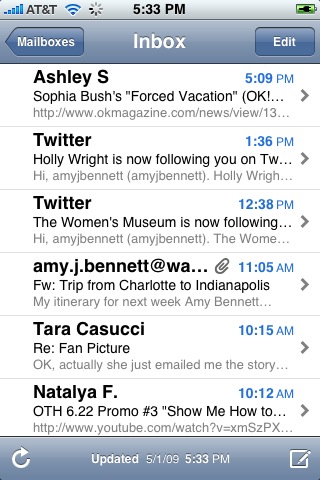 Mail. Closely following Tweetie, I spend most of my time checking my mail in the built-in Mail app. And only second to Tweetie in that I don’t get much mail.