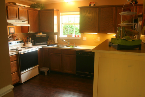 • Put a biege/gold glass tile back-splash.  I love glass tile and think this will be cool.  She wants to do the back-splash in a lighter color since the floor, cabinets and counter top will now all be dark.