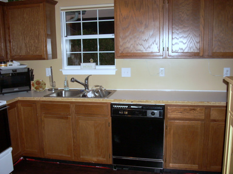 The kitchen counter top demolition began tonight. I can. not. wait. Please ignore the dirt on the counter as well as the dirty dishes in the sink. They are only there so the after pictures look better.