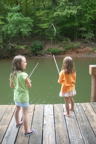 The kids also tested out their fishing rods. And…they hated it. Lexi was trying to catch a small fish and a catfish came out of nowhere, grabbed her line which pulled her forward a bit. It scared Lexi to death and she literally went running for the hills. Then of course Emma wouldn’t touch her rod. And honestly, I took over the rod and it scared me to death when a catfish grabbed my line. And no, I don’t think I’ve ever fished myself. I’m sure my parents my argue but it was definitely not a thing we did growing up. After Saturday, I’m guessing it’s not a family past time the girls want to take up.