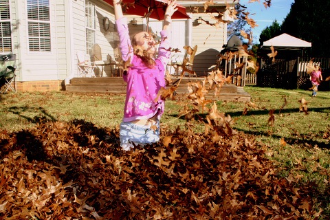 I love the leaves. This was always so much fun when I was a child. My dad would pile the leaves up so high! Great Pictures.