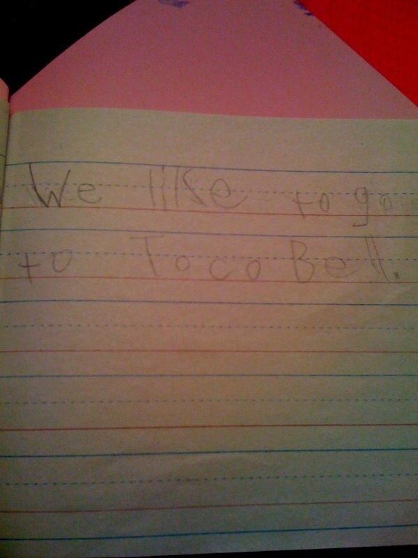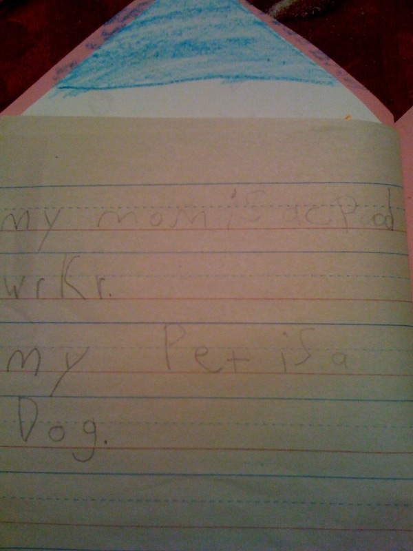 I love her pictures and spelling. I found Jake’s little book like this just a couple of weeks ago when we were cleaning out a closet. There was a box of all of his kindergarten/1st grade stuff I saved, (he is in 8th grade now). He laughed at his pictures an all of the things he wrote. We had a great time looking at all of it. One day hopefully you all will do the same.