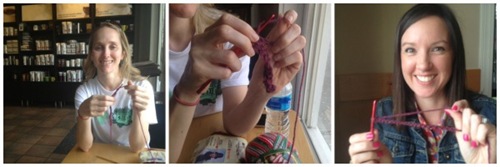 My friend Becky met me at Starbucks a few weeks ago and taught me the basics. I’ve been practicing and finished the roll? spool? bundle? of yarn she gave me. It turned out like a very wonky doll blanket. The sides have more waves than a pageant winner in a parade. I’m horrible at it so far but I do like it.
