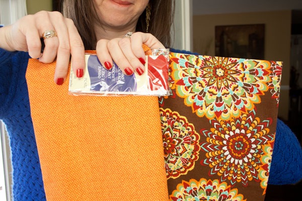 For the sash at the waist, I went with a coordinating orange that has a small pattern in it.