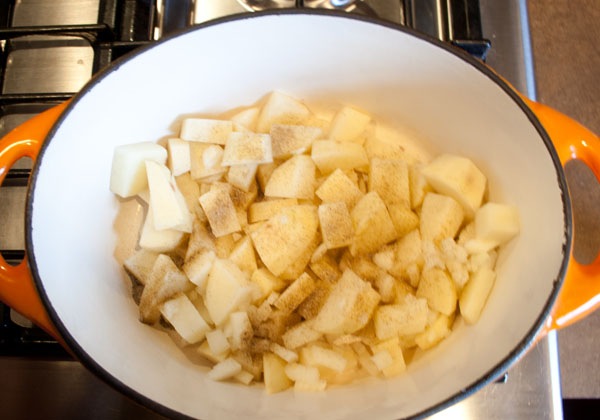 Put the potatoes in a pot. I use my cast iron dutch oven.