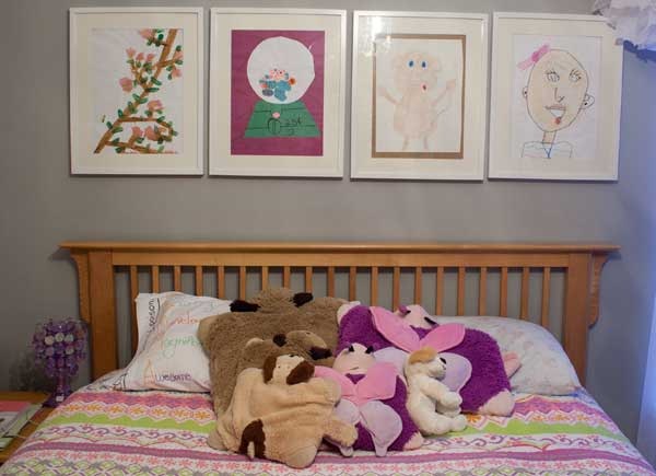 It wasn’t exactly what I envisioned, but we sure could enjoy it in the meantime. It was so much better than IKEA’s standard insert hung neatly 4 times over. And really, I just love walking by and seeing her artwork in her room instead of mine.