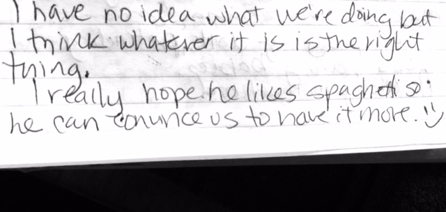 And I mean that in the best possible way a person could mean it. I don’t know why God has chosen so many times to bless us, why he continues to give us good things. I have been unfaithful so many times and yet, even when I’m trying to sacrifice and do good things, he just keeps blessing and blessing. This kid, y’all? Is just so awesome. Like, I really feel totally incapable and unworthy of being his mom. He’s not perfect, I know, and I barely know him, really. And I’m more convinced than ever that God is placing him in our family. But guys, I didn’t picture that it could be like this. I didn’t picture a little boy who wasn’t shy and who loves to cuddle. I didn’t picture a kid who was so eager to learn and so eager to please. Who worried about making his bed and put his dishes up and helped around the house without anyone asking. I didn’t picture a kid already knowing how to laugh at Scott’s jokes or knowing how to belly laugh at the dogs. I didn’t picture a little boy who would after only a few days be calling me Mommy and referring to our house as home or calling us his parents or making gifts for us that say “I love you”. I don’t know if my words do it justice, but I just didn’t picture it would be–that it could be–this good.