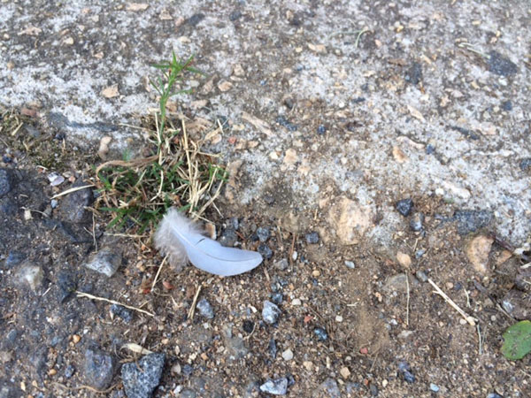 I turned the corner and wouldn’t you know, almost immediately there was a feather sitting right on the side of the road.