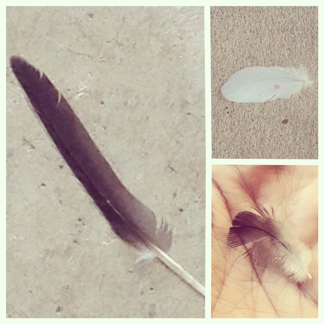 Since Wednesday, several people have posted to my wall, tagged me on Instagram or have texted me and let me know they have also found feathers. And it’s not like they’re going out and looking for them. My friend Sarah said for the first time in 5 years of living at her home, one was lying on the ground right in front of her car door. My friend Beth said she found one right in front of the door at work. My sister-in-law found one INSIDE the door at work. It’s like God is placing these feathers right in their paths. And I’ve noticed a pattern with many of them–it’s when they are coming and going to and from work.
