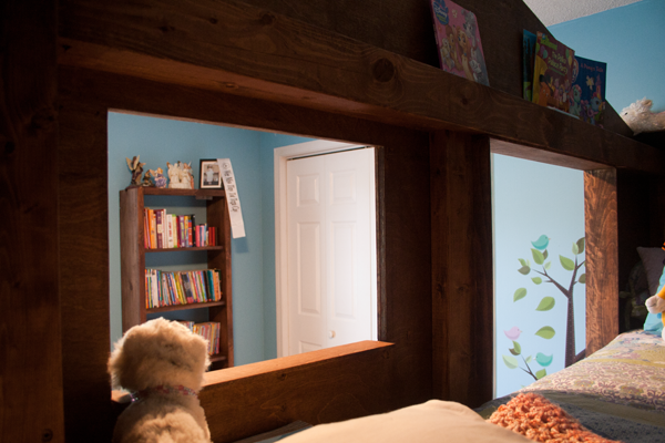 First, when we were expecting the other adoption to happen in May, we did a switcheroo with Lexi’s room with the tree house bed and the playroom. We FINALLY got rid of most of the girls’ toys (hallelujah!) and were able to condense the remaining American Girl (etc, etc) stuff to just the closet in the playroom.
