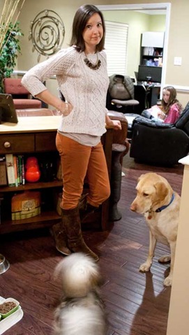I had to include this one because this is really how it looks trying to get a picture indoors. Emma is working on homework and the dogs would NOT leave me alone. They thought the remote in my hand was a treat. Bella is jumping up and down like, “Pick me, pick me, pick me.” Tucker’s all, “Bella, chill so she’ll give us this treat.”