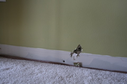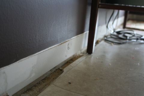 OK, so I’ve been following Ree’s Lodge posts and I’m beginning to understand her panic. When I came home yesterday, I found my baseboards missing. It looks a little like this: